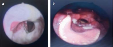 Τα εξιδρωματικά στοιχεία, όμως, παρέμειναν εντός της αρυεπιγλωττίδας τουλάχιστον μία εβδομάδα μετά την έναρξη της παρακολούθησης.