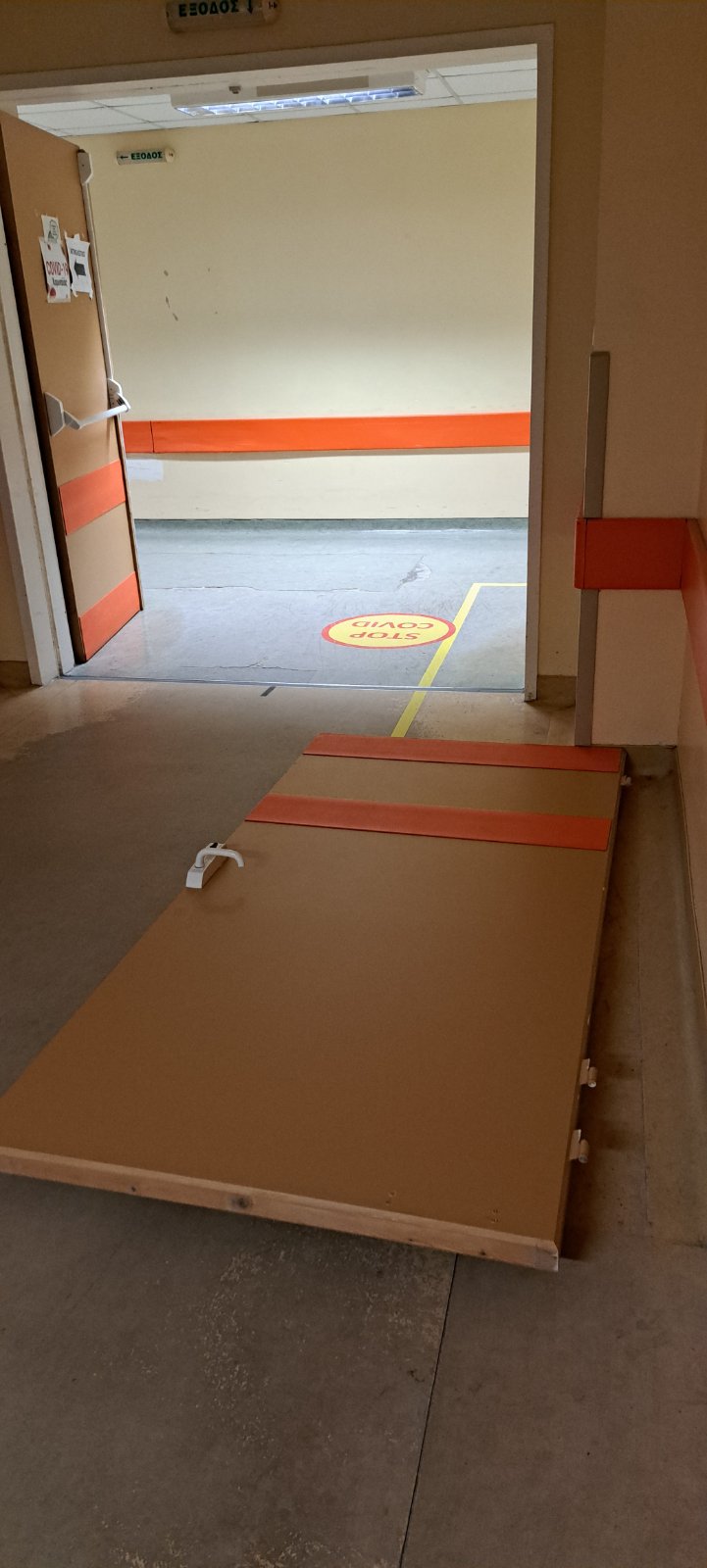 Τότε, η πόρτα έπεσε πάνω της και την καταπλάκωσε, με αποτέλεσμα να χτυπήσει ελαφρά, όπως αποδείχτηκε από την εξέταση στο κεφάλι της και το πόδι της, αλλά δεν συνέβη το ίδιο με το αριστερό χέρι της, το οποίο υπέστη κάταγμα στο ύψος της πηχεοκαρπικης (ΠΧΚ) άρθρωσης.