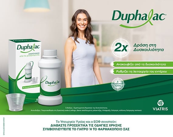 Μπορείτε επίσης να δοκιμάσετε κάποιο σκεύασμα χωρίς ιατρική συνταγή για να ανακουφιστείτε από τα συμπτώματα. Ένα τέτοιο σκεύασμα μπορεί να είναι το σιρόπι Duphalac, το οποίο περιέχει τη δραστική ουσία λακτουλόζη, η οποία έχει διπλή δράση απέναντι στη δυσκοιλιότητα: Αρχικά, προσροφά νερό στον έντερο με αποτέλεσμα να κάνει τα κόπρανα μαλακότερα ανακουφίζοντας έτσι από τη δυσκοιλιότητα και ρυθμίζοντας τη λειτουργία του εντέρου. Ταυτόχρονα, καθώς η λακτουλόζη είναι και πρεβιοτική ουσία, δηλαδή συστατικό που τρέφει τα ωφέλιμα βακτήρια του εντέρου μας, ενισχύει την υγεία και τη δράση του εντέρου μειώνοντας τον αριθμό των παθογόνων βακτηρίων και αυξάνοντας τον αριθμό των καλών βακτηρίων. Συνεπώς αυτές οι δύο δράσεις μπορούν να κάνουν τη διαφορά καθώς θα αντιμετωπίσουμε τη δυσκοιλιότητα ενώ ταυτόχρονα θα φροντίσουμε την υγεία του εντέρου μας. Σημαντικό είναι επίσης ότι το σιρόπι Duphalac δεν περνάει στον οργανισμό αλλά δρα απευθείας στο έντερο και είναι κατάλληλο για παιδιά ενός μήνα και άνω*, ενήλικες, εγκύους, θηλάζουσες και διαβητικούς.