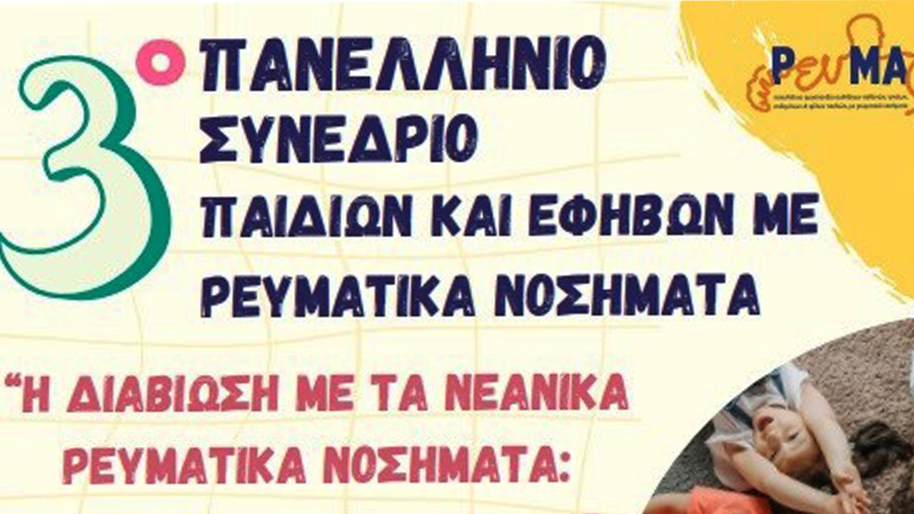 Με την συμμετοχή καταξιωμένων ειδικών επιστημόνων, διεξάγεται το Σάββατο, 13 Απριλίου, στη Θεσσαλονίκη, το 3ο Πανελλήνιο Συνέδριο Παιδιών και Εφήβων με Ρευματικά Νοσήματα.