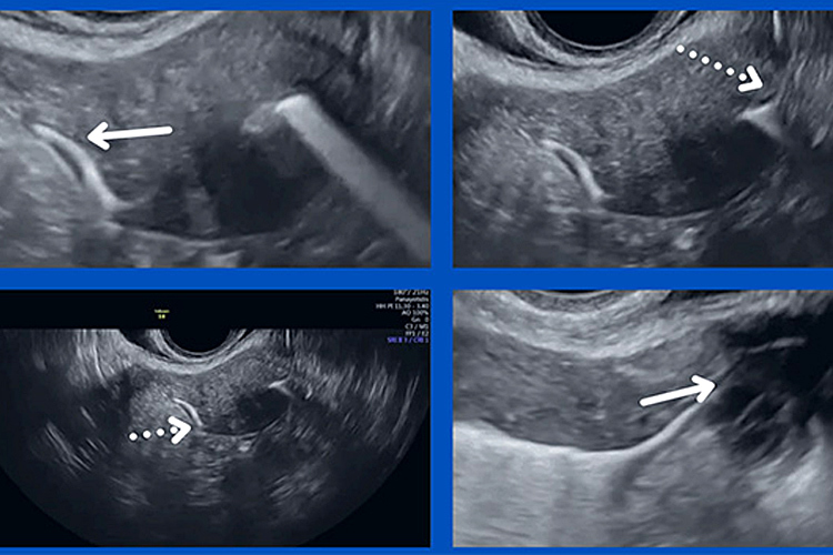 Εικόνες παραδείγματα: τα βέλη δείχνουν τα σημεία όπου το σκιαγραφικό περνά και δείχνει διαπερατή την σάλπιγγα.