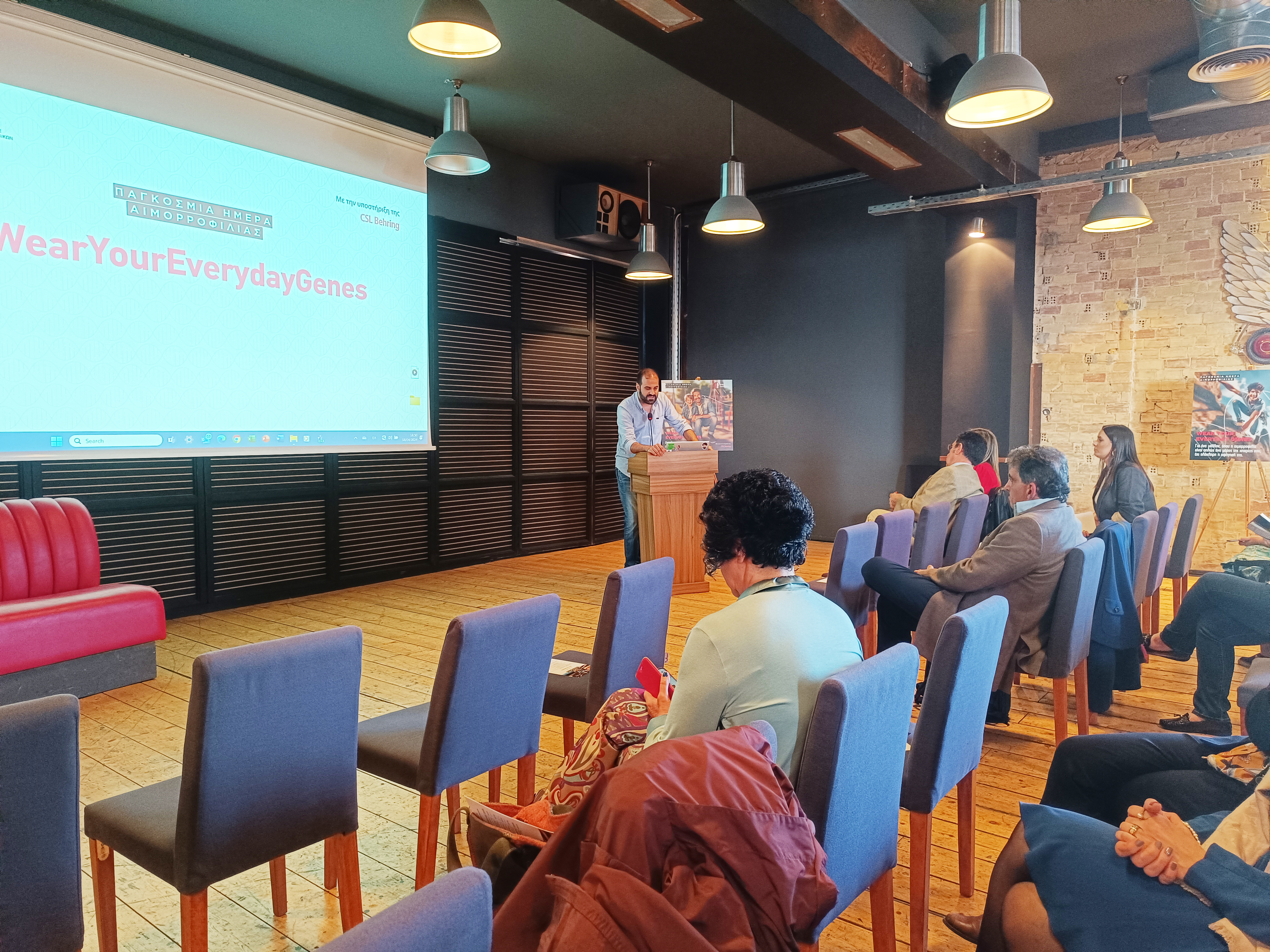 Στην εκδήλωση τονίστηκε ότι το 30% των αιμορροφιλικών παγκοσμίως έχουν πρόσβαση στα κέντρα υποκατάστασης και αυτό είναι πολύ λυπηρό όπως τονίστηκε από τους ομιλητές και ομιλήτριες.