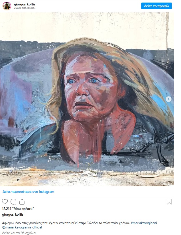 Η μορφή της ηθοποιού Μαρίας Καβογιάννη, στο ρόλο της κακοποιημένης γυναίκας κοσμεί εδώ και λίγες μέρες έναν τοίχο παλιού εγκαταλελειμμένου πρατηρίου καυσίμων, στον παράδρομο της εθνικής οδού Θεσσαλονίκης Μουδανιών. Τη φιλοτέχνησε ο street artist Γιώργος Κόφτης, εμπνευσμένος από την καθηλωτική ερμηνεία της ηθοποιού στο σήριαλ Maestro του Χριστόφορου Παπακαλιάτη, θέλοντας να στείλει ένα ηχηρό μήνυμα κατά της έμφυλης βίας.