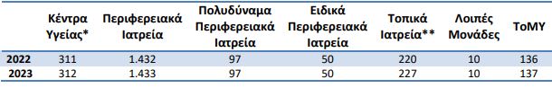 Όπως φαίνεται στον πίνακα που ακολουθεί, τα Κέντρα Υγείας ακαι τα Περιφερειακά Ιατρεία αυξήθηκαν πέρυσι κατά ένα και τα Τοπικά Ιατρεία κατά επτά.