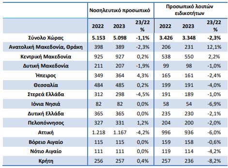 Το νοσηλευτικό προσωπικό μειώθηκε το 2023 κατά 1,1% στο σύνολο της Χώρας σε σχέση με το 2022.