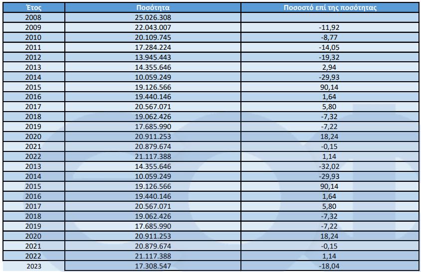 Ακόμη μεγαλύτερη ήταν η μείωση (26,4%) σε λιανικές τιμές. Η αξία των παράλληλων εξαγωγών ανήλθε πέρυσι σε 293,2 εκατομμύρια ευρώ, έναντι 395,3 εκατομμυρίων το 2022.