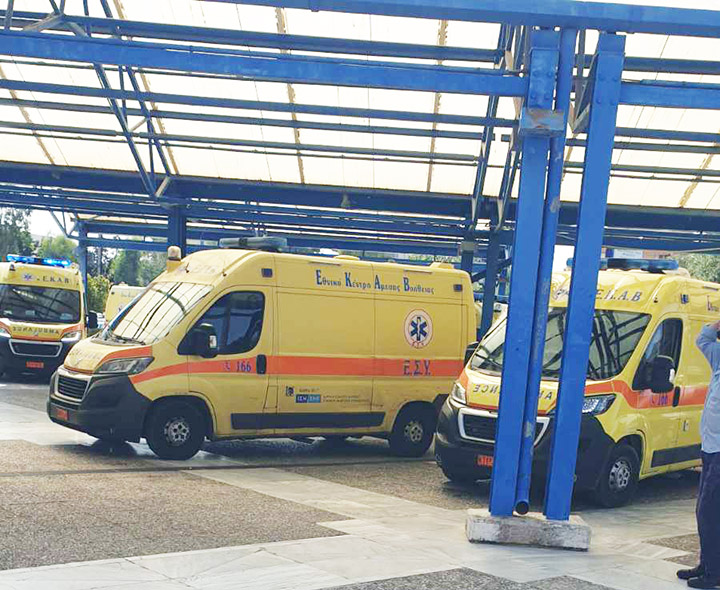 Τα ασθενοφόρα σταθμεύουν στη κεντρική είσοδο γιατί ανακαινίζεται τα Τμήμα Επειγόντων Περιστατικών. "Οι λιγοστοί εργαζόμενοι γιατροί, νοσηλευτές, τραυματιοφορείς τρέχουν και δεν φθάνουν", σημειώνει ο κ. Γιαννάκος, για να εξηγήσει: