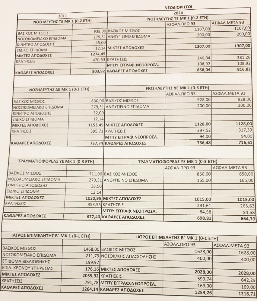 Χαμηλότεροι και από το 2011 είναι σήμερα οι μισθοί των υγειονομικών.