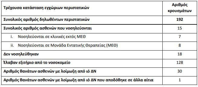 Καταγράφηκαν, επίσης, 12 νέα κρούσματα και 15 νοσηλείες ασθενών, εκ των οποίων οι 8 σε ΜΕΘ.