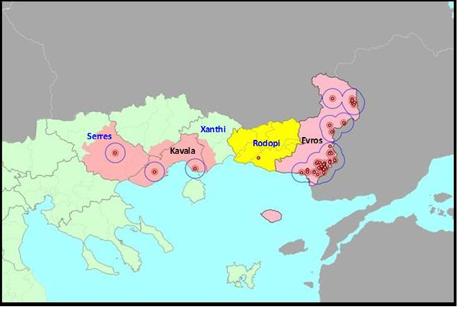 Όπως αναφέρεται σε ανακοίνωση της Διεύθυνσης Κτηνιατρικής της Γενικής Διεύθυνσης Αγροτικής Οικονομίας και Κτηνιατρικής της Περιφέρειας Κεντρικής Μακεδονίας, οροθετήθηκαν οι ζώνες προστασίας και επιτήρησης που περιλαμβάνουν τις περιοχές σε ακτίνα 3 και 10 χιλιομέτρων αντιστοίχως από τη μολυσμένη εκτροφή (η ζώνη επιτήρησης περιλαμβάνει τη ζώνη προστασίας) και η περαιτέρω απαγορευμένη ζώνη που περιλαμβάνει τους 5 από τους 7 δήμους της Π.Ε. Σερρών, όπως φαίνεται και από το συνημμένο χάρτη για τη δεδομένη χρονική στιγμή (τροποποιούνται οι απαγορευμένες ζώνες ανάλογα με το νόσημα και τις εστίες που εμφανίζονται εκάστοτε στη χώρα μας βάση πρόσφατου εγγράφου του ΥπΑΑΤ) και εφαρμόζονται τα προβλεπόμενα από τη νομοθεσία μέτρα.