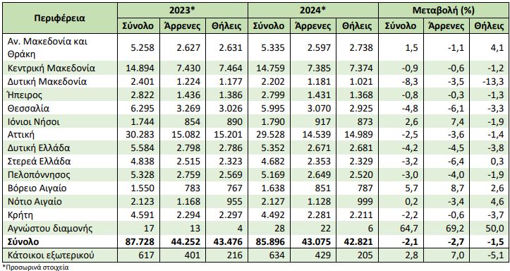 Ετήσια μεταβολή θανάτων ανά φύλο και περιφέρεια