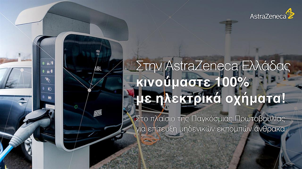Η AstraZeneca Ελλάδας, κινείται 100% με ηλεκτρικά οχήματα, καθώς ολοκλήρωσε τη μετάβασή της στην ηλεκτροκίνηση. Η πρωτοβουλία υλοποιήθηκε στο πλαίσιο της διεθνούς δέσμευσης της εταιρείας Ambition Zero Carbon. Στους περιβαλλοντικούς στόχους για τον εταιρικό στόλο, η AstraZeneca Ελλάδας ανταποκρίθηκε ταχύτατα και με συνέπεια, επιτυγχάνοντας να αντικαταστήσει και τα 230 οχήματα των εργαζόμενών της με ηλεκτρικά τελευταίας τεχνολογίας.