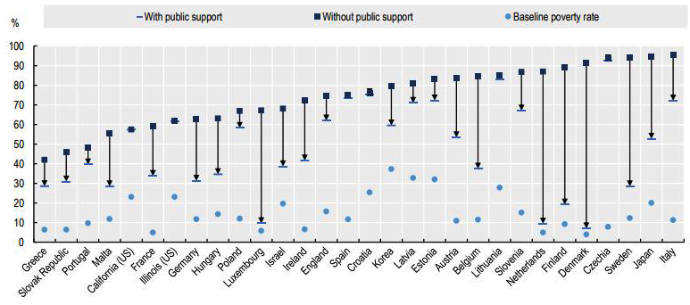 Χωρίς τις δημόσιες παροχές, το 42% έως 95% των ηλικιωμένων θα βρίσκονταν αντιμέτωποι με το φάσμα της φτώχειας.