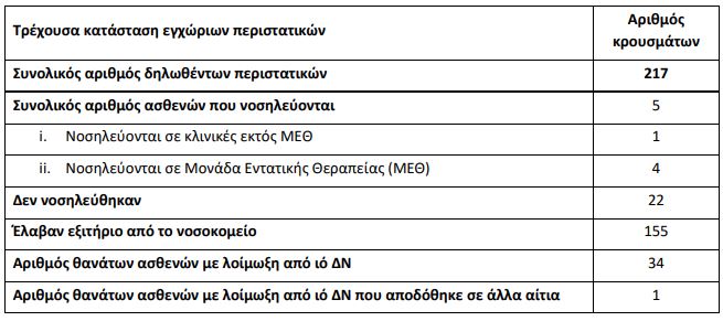 Όπως επισημαίνεται, ο συνολικός αριθμός των θανάτων παραμένει 34 και των κρουσμάτων σε 217 (ήταν 214).