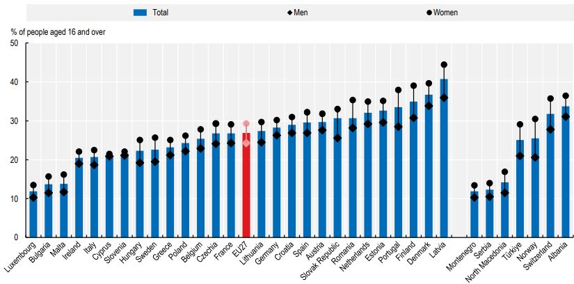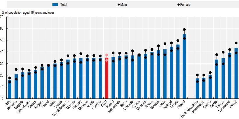 Όπως φαίνεται από το πιο πάνω γράφημα, η Ελλάδα κατέχει τη δέκατη θέση στο συγκεκριμένο πεδίο, έπειτα από το Λουξεμβούργο, τη Βουλγαρία, τη Μάλτα, την Ιρλανδία, την Ιταλία, την Κύπρο, τη Σλοβενία, την Ουγγαρία και τη Σουηδία.