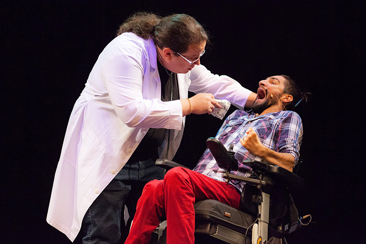 Είναι ορισμένες από τις εξωπραγματικές συμπεριφορές που έχει συναντήσει ο Δημήτρης Αντωνίου στα 18 χρόνια που βρίσκεται καθηλωμένος σε αναπηρικό αμαξίδιο. Κάποιες απ’ αυτές τις διακωμωδεί και τις παρουσιάζει στην θεατρική του παράσταση "Στα καλά του καθισμένου", επιλέγοντας το χιούμορ ως έναν από τους τρόπους ενημέρωσης και ευαισθητοποίησης. "Γιατί όσοι χαμογελάνε στα εύκολα, είναι χαρούμενοι. Όσοι όμως χαμογελούν στα δύσκολα, είναι δάσκαλοι", όπως συνηθίζει να λέει.