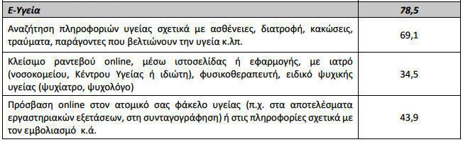 Το 28,5% των πολιτών έκανε χρήση ιατρικών υπηρεσιών, μέσω ιστοσελίδας ή εφαρμογής, όπως για παράδειγμα, λήψη συνταγής ή ιατρικής συμβουλής, αντί επίσκεψης σε νοσοκομείο ή γιατρό.