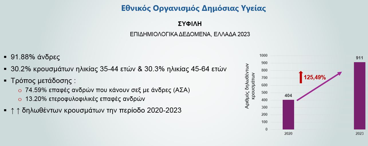 Τα κρούσματα σύφιλης αυξήθηκαν την τελευταία τριετία κατά 125,49%, ενώ το ίδιο διάστημα αυξήθηκαν κατά 178,65% τα κρούσματα γονόρροιας.