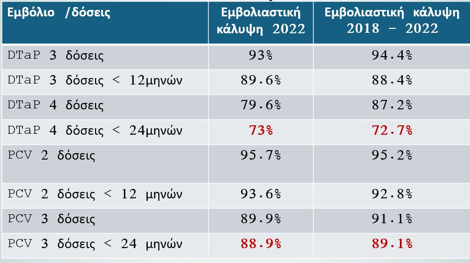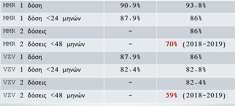 Το 2,35% των παιδιών της συγκεκριμένης ηλικίας δεν είχαν κάνει κανένα εμβόλιο μέχρι τον περασμένο Σεπτέμβριο, ενώ η εμβολιαστική κάλυψη είναι χαμηλότερη σε παιδιά που αποκτούν ΑΜΚΑ μετά την ηλικία των 2 ετών.