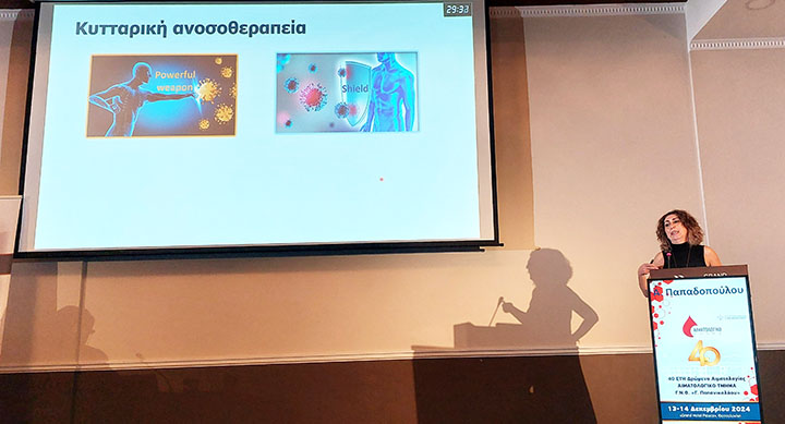 Στη νέα εποχή των προηγμένων θεραπειών, πολλά κύτταρα του ανοσοποιητικού μπορούν να αποτελέσουν την πλατφόρμα για την δημιουργία ζωντανών φαρμάκων, με τα Τ λεμφοκύτταρα να παρουσιάζουν ιδιαίτερο ενδιαφέρον, ανέφερε η βιοχημικός, συνεργάτιδα του Τμήματος, επίκουρη καθηγήτρια στο Βιολογικό Τμήμα του ΑΠΘ, Αναστασία Παπαδοπούλου.