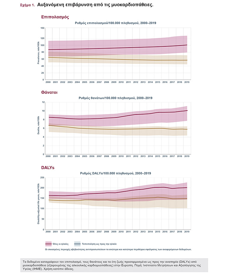 Αναφορικά με τις μυοκαρδιοπάθειες, αν και δεν υπάρχουν διαθέσιμα δεδομένα για την Ελλάδα, μία πληθώρα μελετών στην Ευρώπη έχουν τεκμηριώσει ότι οι παθήσεις αυτές επιφέρουν μεγάλο οικονομικό κόστος.
