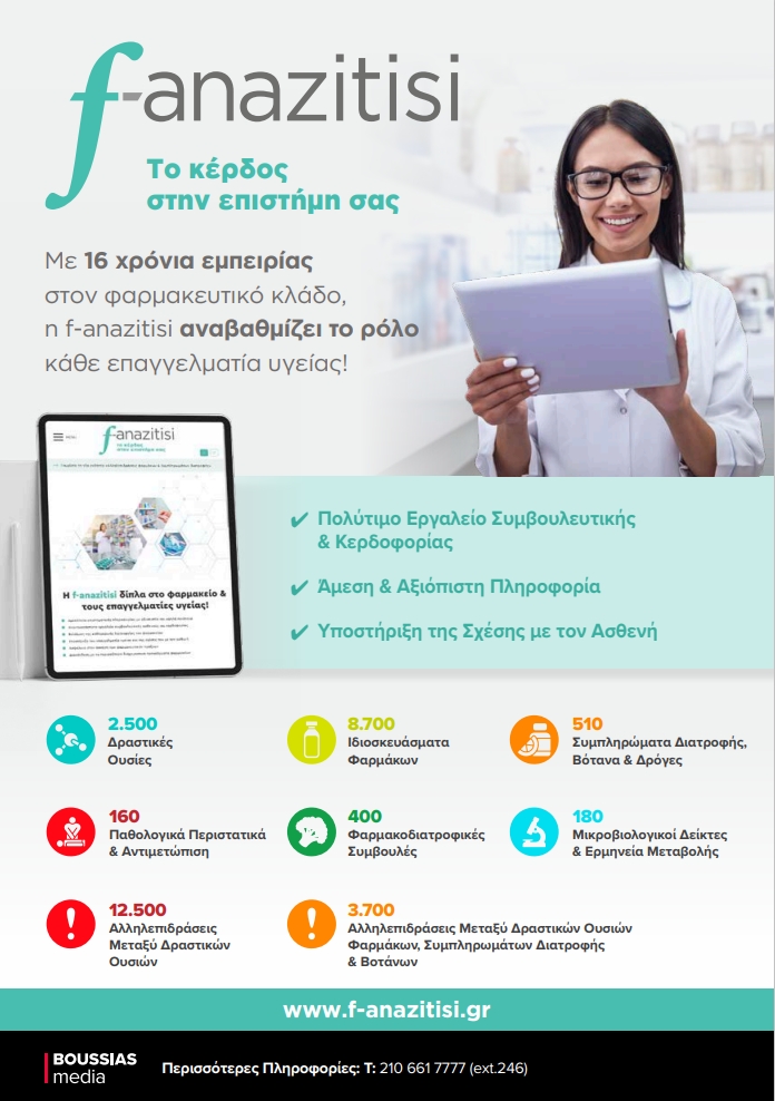 Τα τελευταία 16 χρόνια στην ελληνική αγορά έχει καθιερωθεί ένα καινοτόμο εργαλείο υποστήριξης των φαρμακοποιών και των επαγγελματιών υγείας, η f-anazitisi. Μέσα από τη χρήση της και την ενσωμάτωσή της στα διαχειριστικά προγράμματα των φαρμακείων, έχει αναβαθμίσει τον ρόλο των φαρμακοποιών σε συμβούλους υγείας για τους ασθενείς και έχει προωθήσει την κερδοφορία του φαρμακείου.