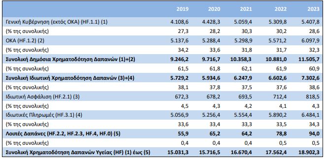 Όπως αναφέρεται στην έκθεση, η συνολική χρηματοδότηση των δαπανών Υγείας παρουσίασε αύξηση κατά 7,6% το 2023 σε σχέση με την αντίστοιχη χρηματοδότηση του 2022.