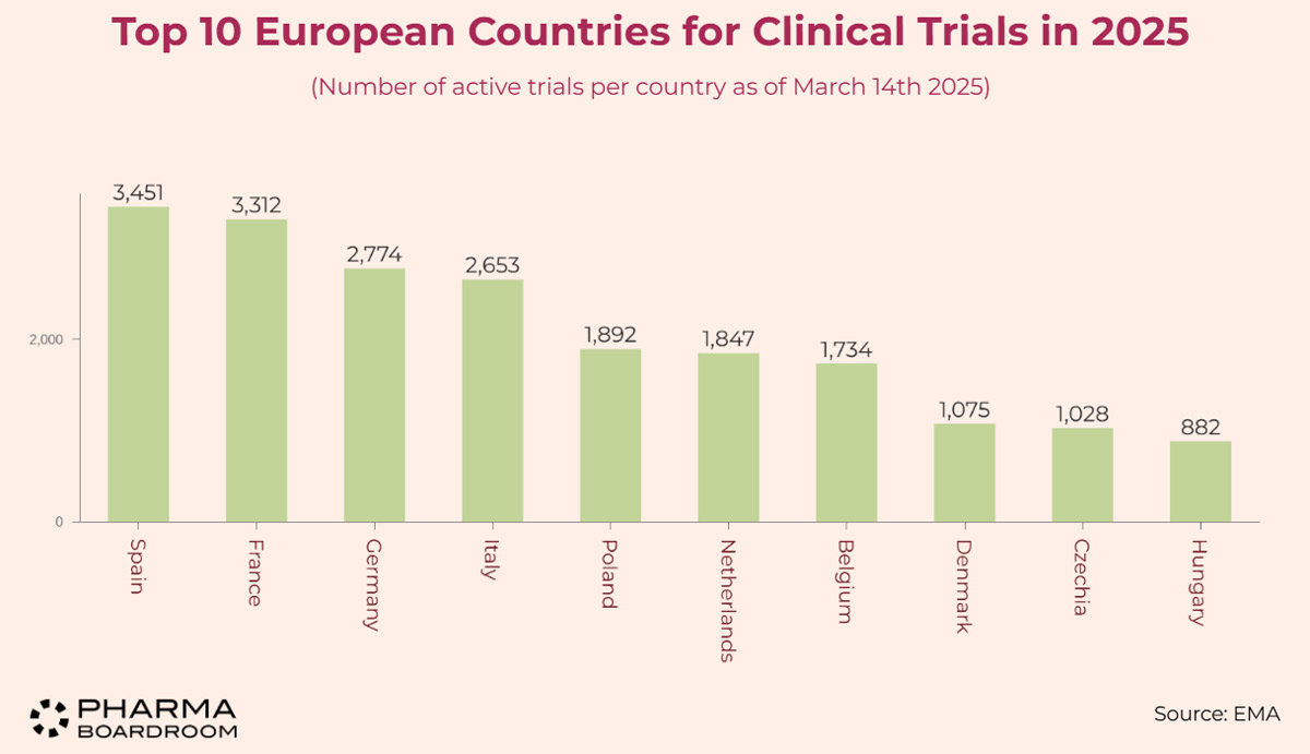 Η Ισπανία κατέχει την πρώτη θέση μεταξύ των ευρωπαϊκών εταιρειών παραγωγής ισχύος κλινικών δοκιμών με 3.451 τρέχουσες ενεργές δοκιμές. Ως η πρώτη χώρα στην Ευρώπη που υιοθέτησε το CTR, η Ισπανία έχει καθιερωθεί ως περιφερειακός ηγέτης στις κλινικές δοκιμές, με τη Βαρκελώνη να αποτελεί τον σημαντικότερο κόμβο της.