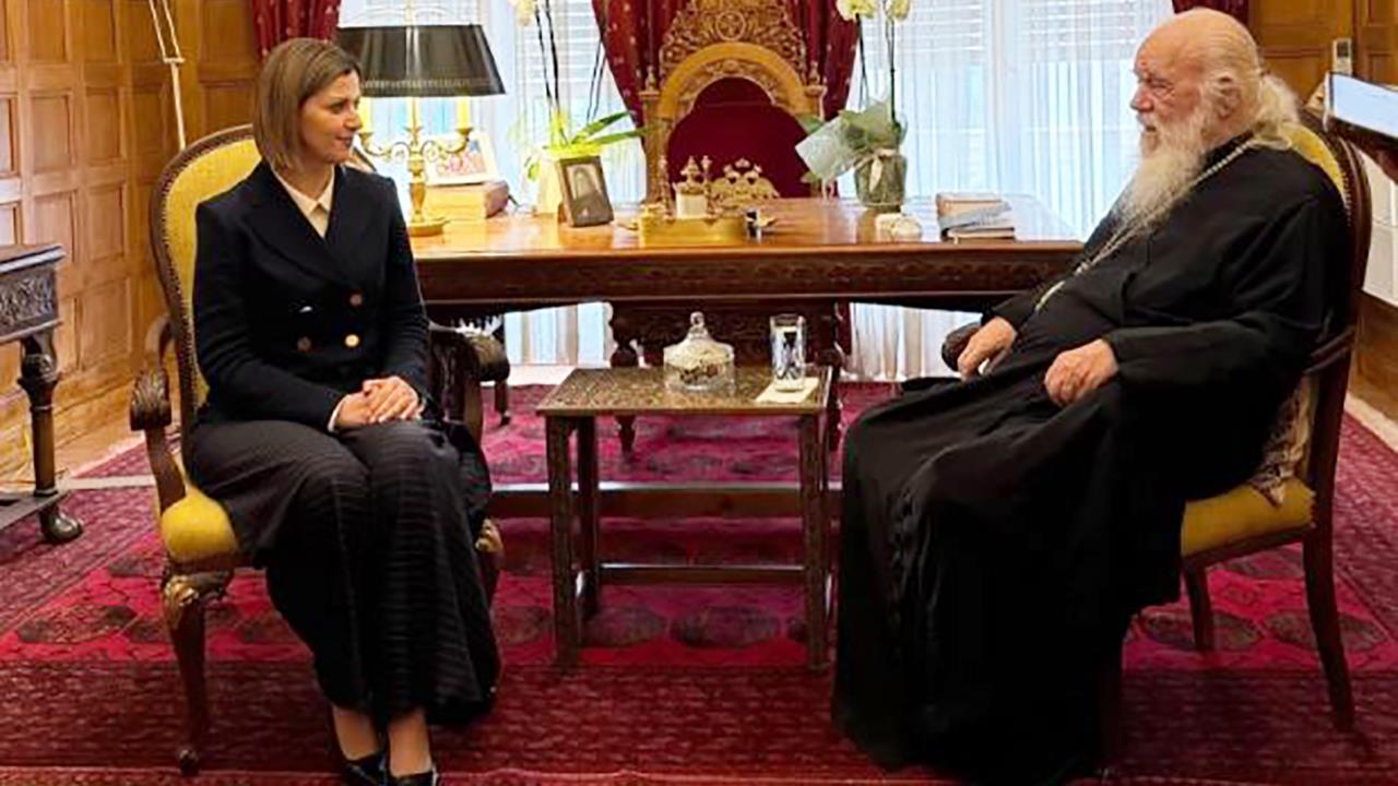 Η αναπληρώτρια υπουργός Υγείας Ειρήνη Αγαπηδάκη, συναντήθηκε σήμερα με τον Μακαριώτατο Αρχιεπίσκοπο Αθηνών και πάσης Ελλάδος, κ.κ. Ιερώνυμο Β’. Ο Προκαθήμενος της Ελλαδικής Εκκλησίας υποδέχθηκε την αναπληρώτρια υπουργό στο γραφείο του στην Ιερά Αρχιεπισκοπή Αθηνών, όπου συζήτησαν για την ενίσχυση της συνεργασίας Εκκλησίας και Πολιτείας στον τομέα της Δημόσιας Υγείας και της πρόληψης.