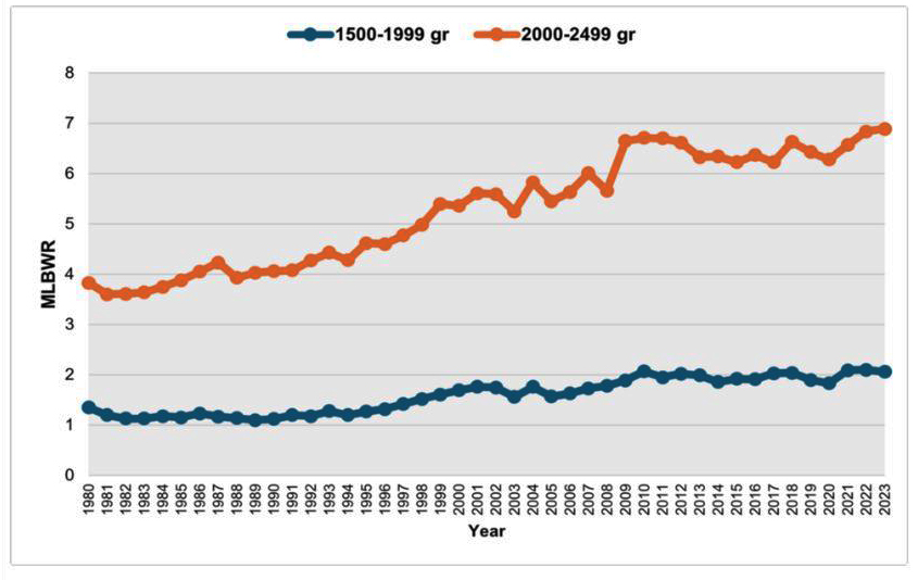 Από την ανάλυση των στοιχείων φάνηκε πως, μετά από μία δεκαετία σταθεροποίησης (1980 - 1990), οι γεννήσεις παιδιών με χαμηλό βάρος μπήκαν σε μία περίοδο σταθερής αύξησης (1990 - 2010), με το ποσοστό να φτάνει σε πολύ υψηλά επίπεδα από το 2010 έως το 2023.