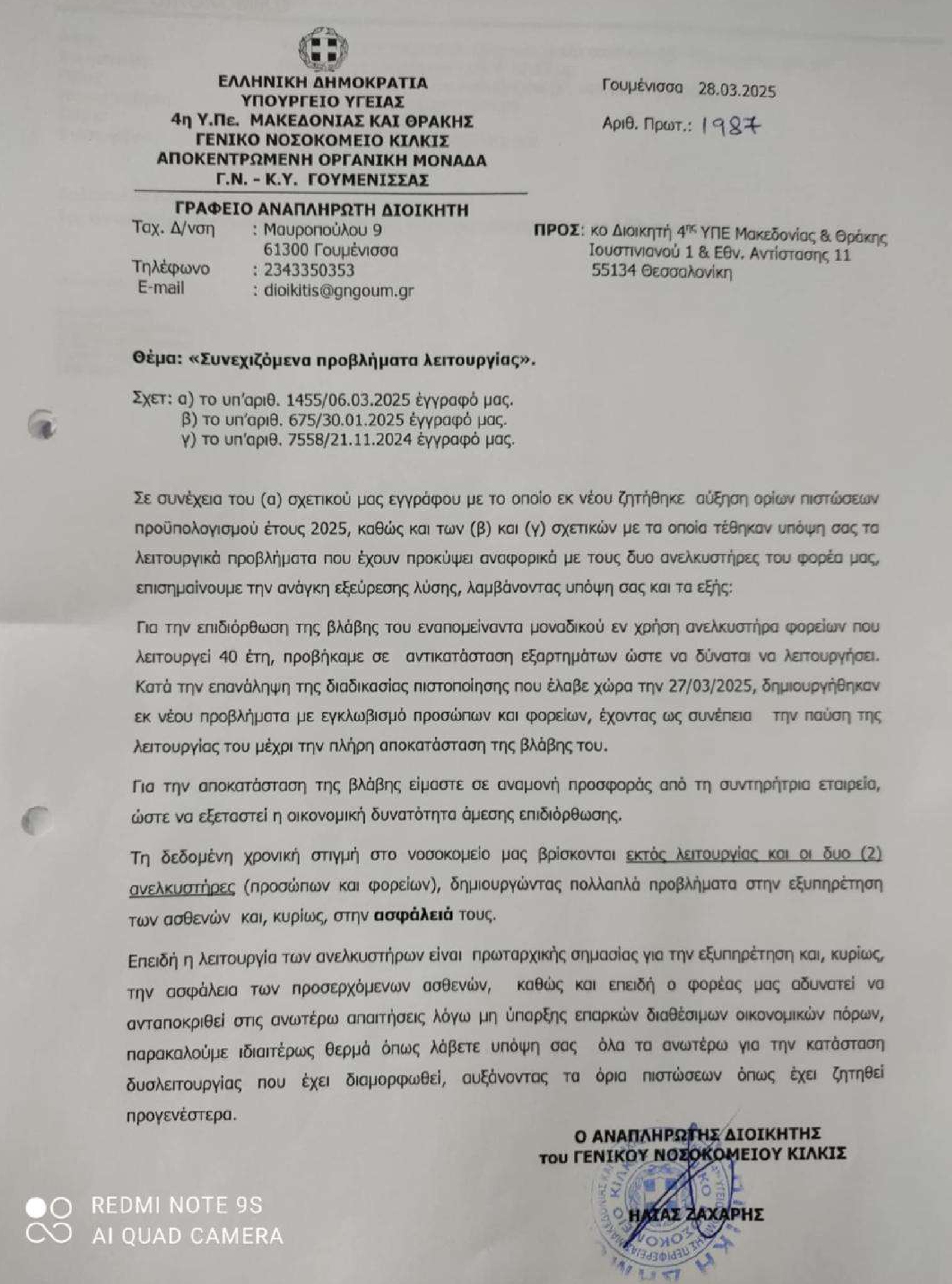 Παραθέτουν, μάλιστα, και σχετικό έγγραφο της διοίκησης, τονίζοντας πως το ένα από τα δύο ασανσέρ παραμένει εκτός λειτουργίας από τον Σεπτέμβριο του 2024 και το άλλο, με συνεχείς βλάβες, απορροφά υπέρογκα ποσά από τον προϋπολογισμό.