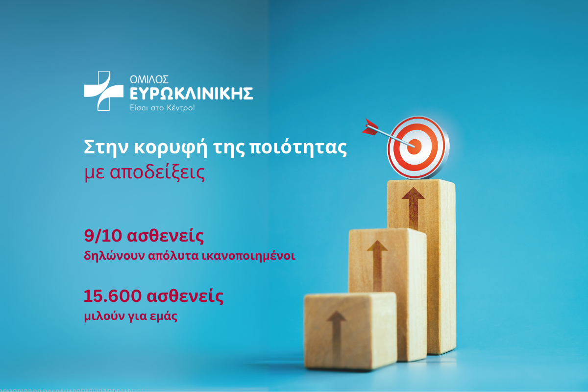 - Μέσο Ποσοστό Ικανοποίησης Εξωτερικών Ασθενών Ευρωκλινικής Αθηνών & Ευρωκλινικής Παίδων: 93,3%