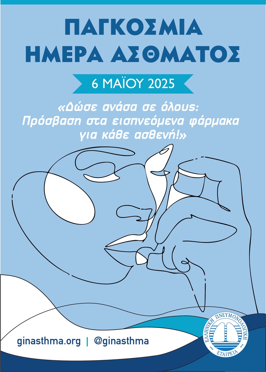 Η Ομάδα Εργασίας για το Βρογχικό Άσθμα της Ελληνικής Πνευμονολογικής Εταιρείας (ΕΠΕ) διοργανώνει ενημερωτική διαδικτυακή εκδήλωση ανοιχτή προς το κοινό με αφορμή τη σημερινή Παγκόσμια Ημέρα Άσθματος (6 Μαΐου 2025).
