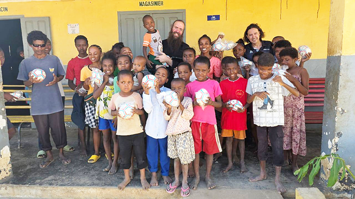 Τον περασμένο μήνα, ο δημιουργός της "μπάλας για όλους" έκανε Πάσχα στην επαρχία Τολιάρας στη νότια Μαδαγασκάρη, μαζί με τον επίσκοπο Πρόδρομο και τα παιδιά με οπτική αναπηρία σε μια δομή αρωγής, τα οποία είχαν παραλάβει τις μπάλες τον περασμένο Αύγουστο, στο πλαίσιο αποστολής παιδιάτρων από τη Βόρεια Ελλάδα. "Ήταν ένα ανεπανάληπτο Πάσχα προσφοράς, μια εμπειρία ζωής", σημειώνει.