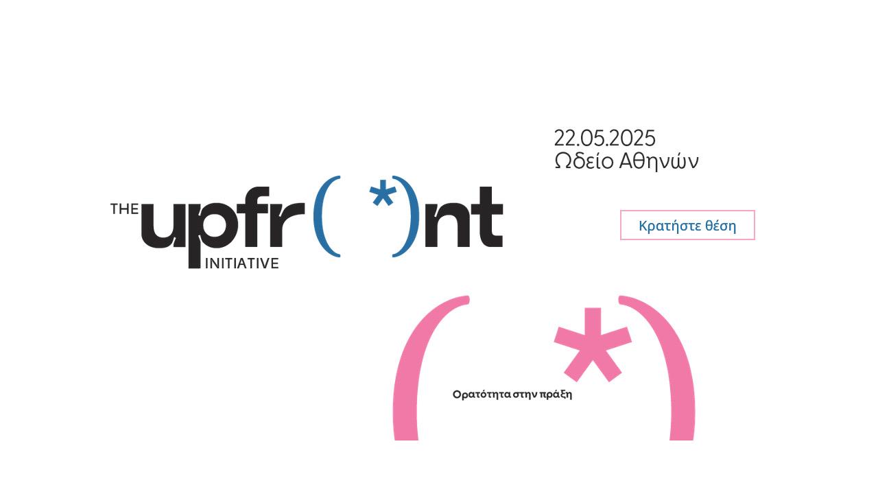 Το συνέδριο The Upfront Initiative επιστρέφει για 4η συνεχή χρονιά, την Πέμπτη 22 Μαΐου, στο Ωδείο Αθηνών, ανανεωμένο και πιο επίκαιρο από ποτέ. Με τη συμμετοχή περισσότερων από 40 προσωπικοτήτων από τον χώρο του πολιτισμού, των επιχειρήσεων, της πολιτικής, των media και της κοινωνίας των πολιτών, το συνέδριο αναδεικνύει τις σύγχρονες προκλήσεις γύρω από την ισότητα, τη διαφορετικότητα και τη συμπερίληψη στον επαγγελματικό και κοινωνικό χώρο.