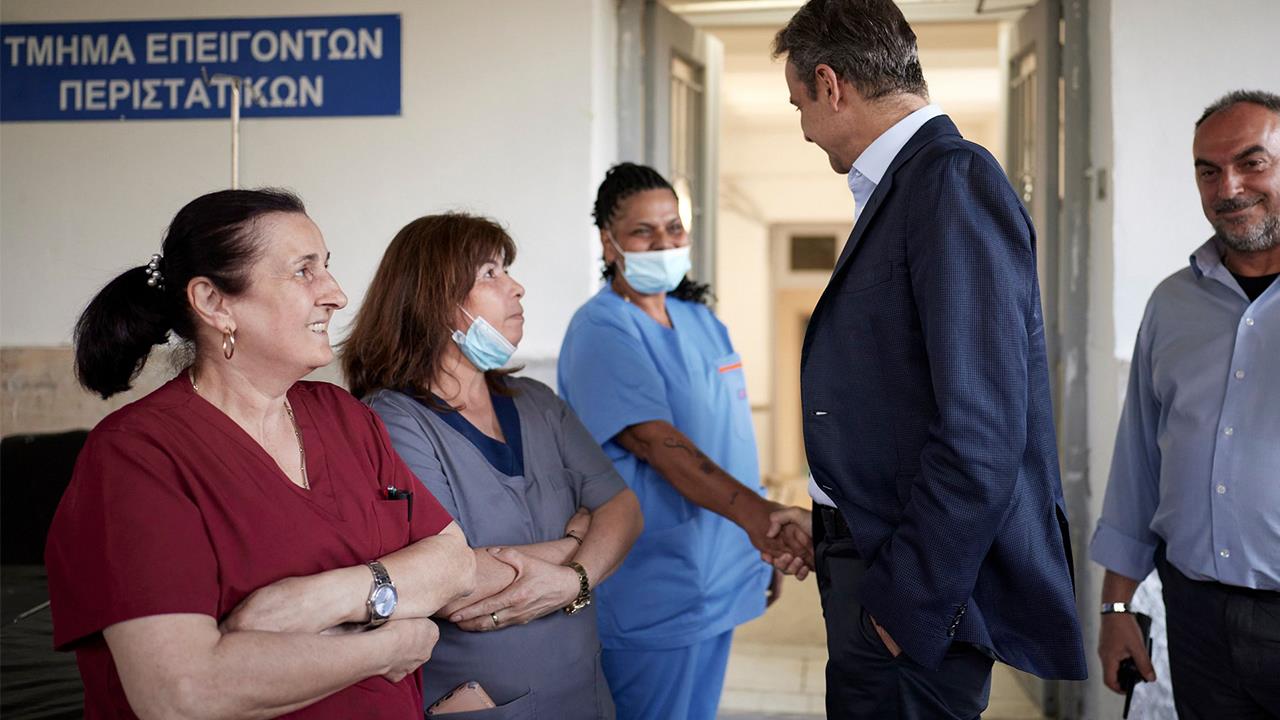 Ο Πρωθυπουργός, συνοδευόμενος από τον υπουργό Υγείας Άδωνι Γεωργιάδη, συνομίλησε με εργαζόμενους και ασθενείς και ενημερώθηκε για τα στάδια που ακολουθεί ο κάθε πολίτης: από την έκδοση του ατομικού εισιτηρίου στο γραφείο κίνησης ασθενών έως το γραφείο διαλογής, όπου κάθε περιστατικό κατατάσσεται σε μία από πέντε κατηγορίες σοβαρότητας και στη συνέχεια παραπέμπεται στον κατάλληλο γιατρό, με ανάλογη προτεραιότητα.