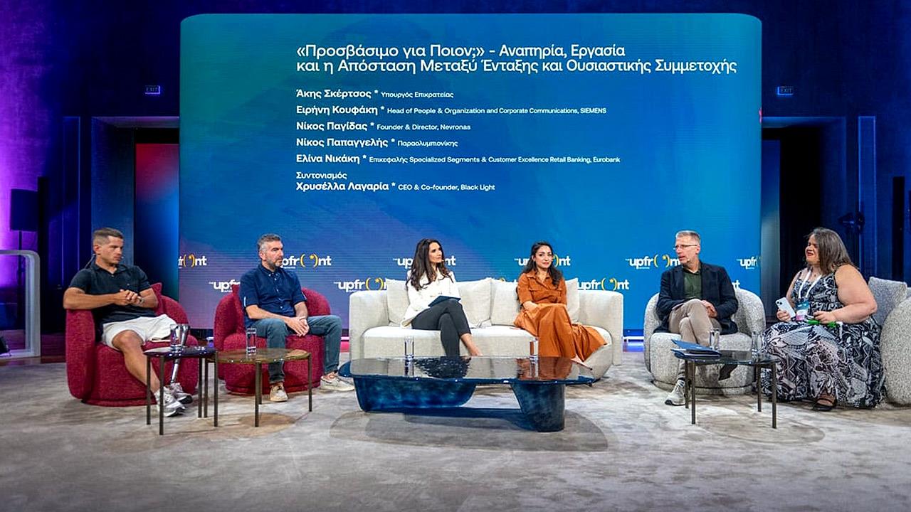 Συμμετέχοντες από την κυβέρνηση, τον τραπεζικό και τον τεχνολογικό τομέα, την κοινωνία των πολιτών και τον αθλητισμό κατέθεσαν εμπειρίες, προτάσεις και πρακτικές παρεμβάσεις για τη βελτίωση της καθημερινότητας των ατόμων με αναπηρία στη διάρκεια της συζήτησης, που πραγματοποιήθηκε στο πλαίσιο του The Upfront Initiative, που διοργανώνεται για 4η χρονιά στο Ωδείο Αθηνών.
