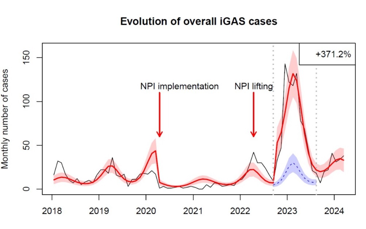 Από τον Οκτώβριο 2022 έως το 2023, οι περιπτώσεις iGAS αυξήθηκαν κατά 371.2% σε σύγκριση με τις προ-πανδημικές τάσεις. Η συνολική αύξηση ήταν παρόμοια μεταξύ των χωρών, αλλά οι φαινότυποι εμφάνιζαν διαφορές.