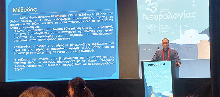 Δύο στους τρεις ασθενείς με επεισοδιακή ή χρόνια ημικρανία παρουσίασαν μείωση των ημικρανικών κρίσεων τουλάχιστον κατά 50% με το μονοκλωνικό αντίσωμα eptinezumab, με τη μείωση τα φτάνει στο 75% για σχεδόν τους μισούς εξ αυτών. Ακόμη μεγαλύτερα ήταν τα ποσοστά βελτίωσης στα συνοδά συμπτώματα, όπως η ναυτία, η φωτοφοβία και η ημικρανία, ανεξάρτητα από την ανταπόκριση των ασθενών στον πόνο της ημικρανίας. Τα ευρήματα αυτά προκύπτουν από τα πρώτα ελληνικά δεδομένα χορήγησης του φαρμάκου σε πραγματικό πληθυσμό, στο πλαίσιο εν εξελίξει πολυκεντρικής μελέτης σε τέσσερα νευρολογικά κέντρα στην Αθήνα, στη Θεσσαλονίκη και στην Πάτρα.