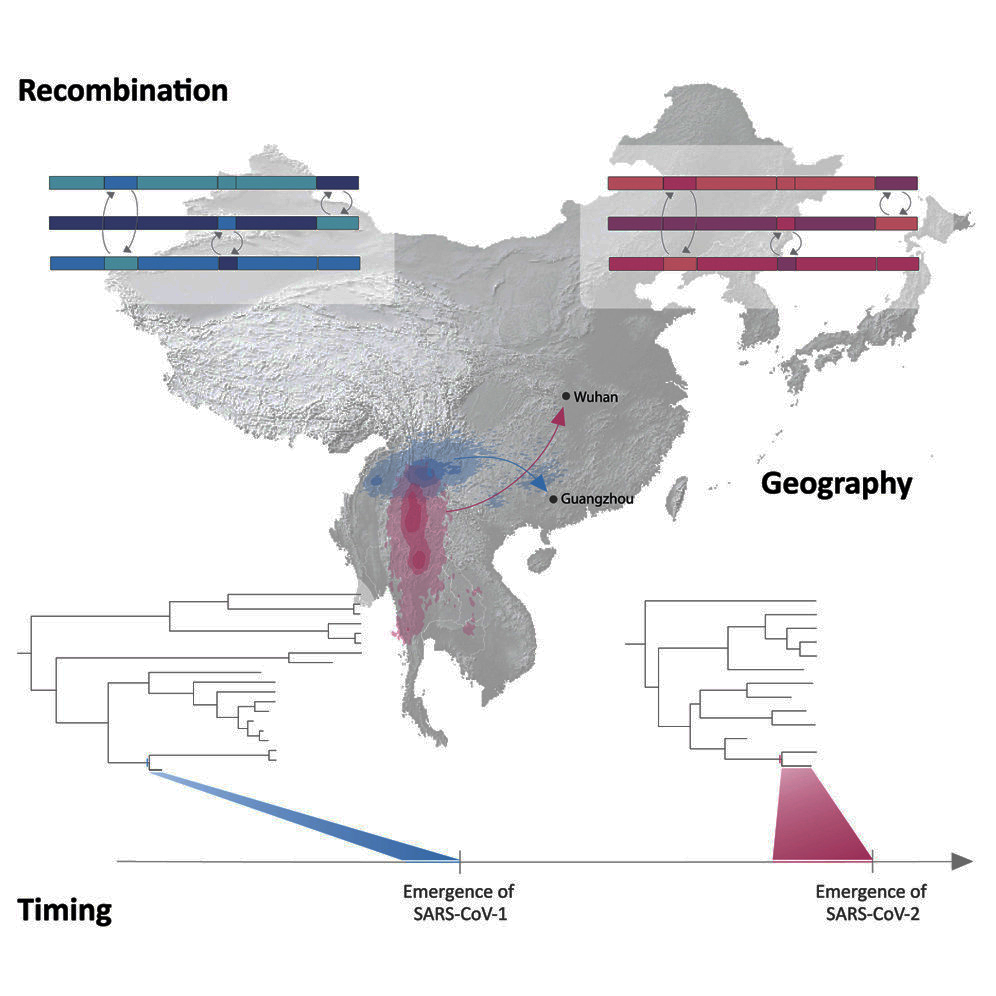 Ο κοντινότερος «πρόγονος» του ιού SARS-CoV-2 εντοπίστηκε σε πεταλοειδείς νυχτερίδες στη νοτιοδυτική Κίνα και στο Βόρειο Λάος, περίπου 10 χρόνια πριν εμφανιστεί σε ανθρώπους στη Γιουχάν της Κίνας και προκαλέσει στη συνέχεια την παγκόσμια υγειονομική κρίση. Αυτή η μεταφορά έγινε σε απροσδόκητα μικρό χρόνο και είναι αδύνατο να αποδοθεί στις φυσικές μετακινήσεις των νυχτερίδων από μια περιοχή στην άλλη. Μια ανάλογη διαδρομή, λίγο μικρότερης απόστασης, είχε κάνει ο SARS-CoV1, (o κορωνοϊός σοβαρού οξέος αναπνευστικού συνδρόμου - SARS που προκάλεσε την επιδημία του 2002-2003) σχεδόν δύο δεκαετίες νωρίτερα, πιθανότατα μέσω της μοσχογαλής, ενός θηλαστικού που λειτούργησε ως ενδιάμεσος ξενιστής.