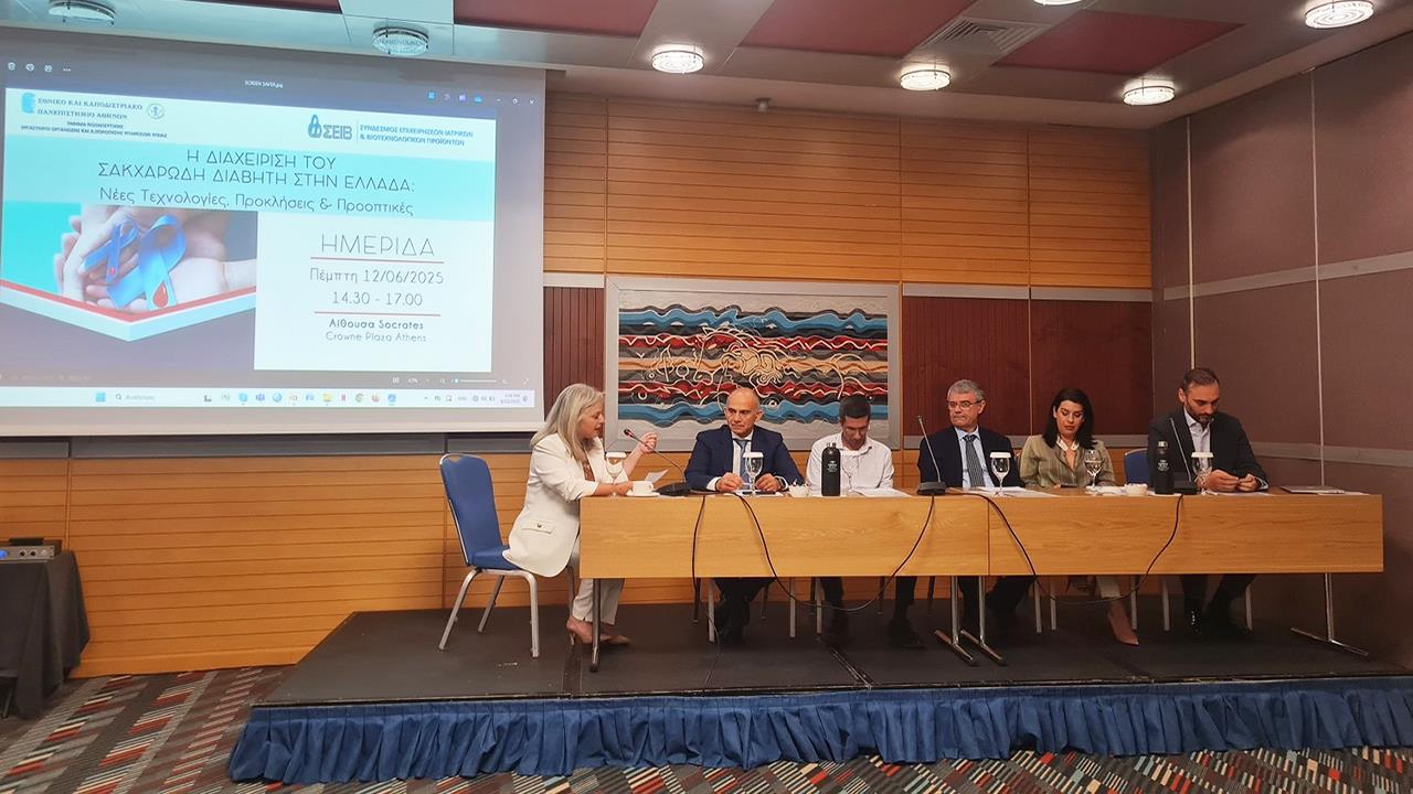 Πραγματοποιήθηκε στα μέσα Ιουνίου η ημερίδα «Η Διαχείριση του Σακχαρώδη Διαβήτη στην Ελλάδα: Νέες Τεχνολογίες, Προκλήσεις και Προοπτικές», που συνδιοργάνωσαν ο Σύνδεσμος Επιχειρήσεων Ιατρικών & Βιοτεχνολογικών Προϊόντων (ΣΕΙΒ) και το Εργαστήριο Οργάνωσης και Αξιολόγησης Υπηρεσιών Υγείας του ΕΚΠΑ.
