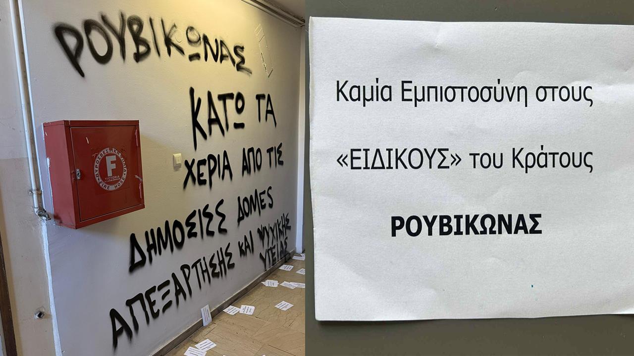 «Σήμερα το πρωί ο Ρουβίκωνας έγραψε συνθήματα έξω από το πολιτικό μου γραφείο και πέταξε τρικάκια.