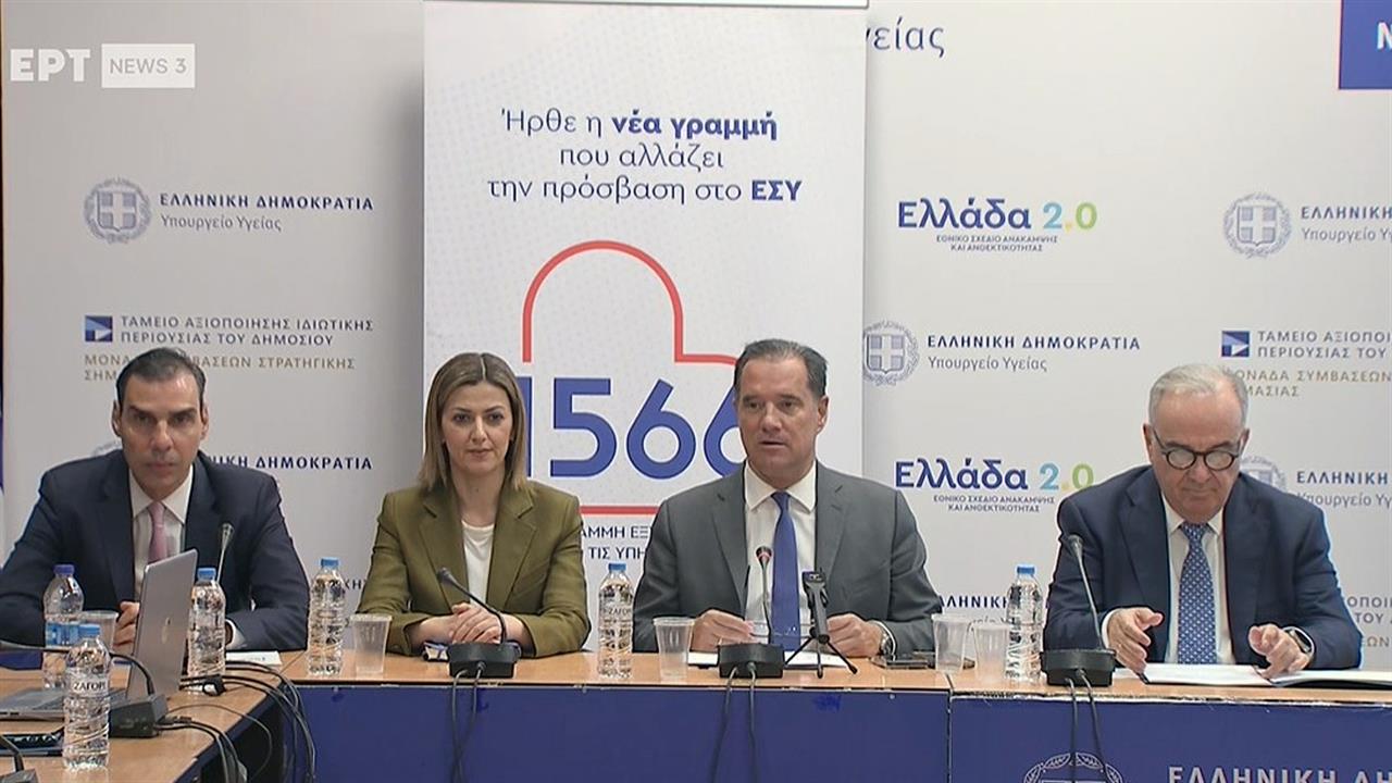 «Το υπουργείο Υγείας αξιοποιώντας τους πόρους του Ταμείου Ανάκαμψης αλλάζει το ΕΣΥ», δήλωσε ο Άδωνις Γεωργιάδης. Σημείωσε ότι το «1566» γίνεται ο ένας δωρεάν για τους πολίτες τηλεφωνικός αριθμός που αφορά τις υπηρεσίες υγείας στην Ελλάδα. Εξήγησε ότι η ιδέα γεννήθηκε από το «1535» που λειτουργεί στο υπουργείο Εργασίας, που άλλαξε τα πάντα στην επαφή με τον πολίτη.