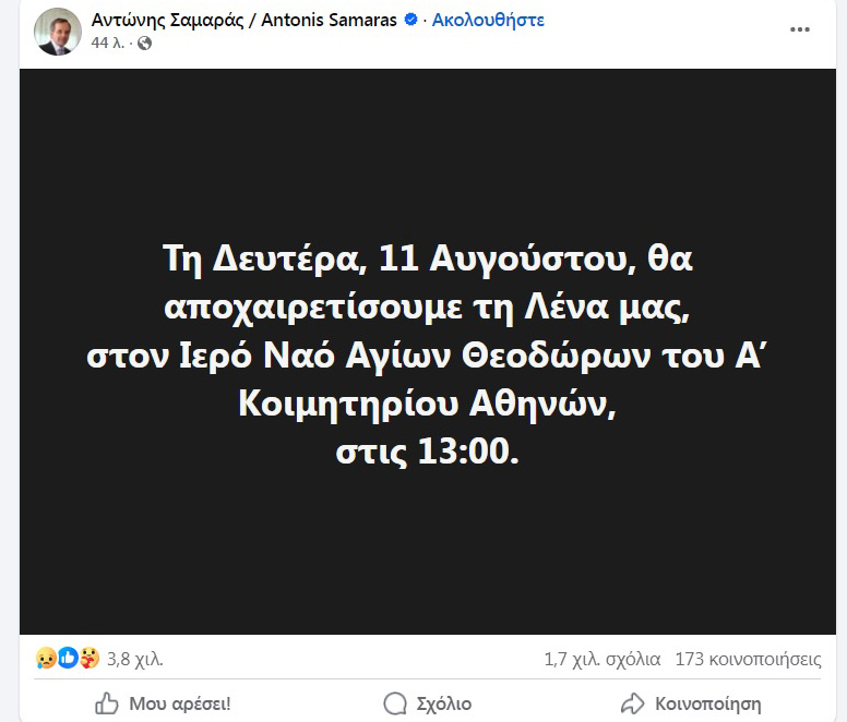 Στο μεταξύ, σε ανάρτησή του ο Αντώνης Σαμαράς αναφέρει: