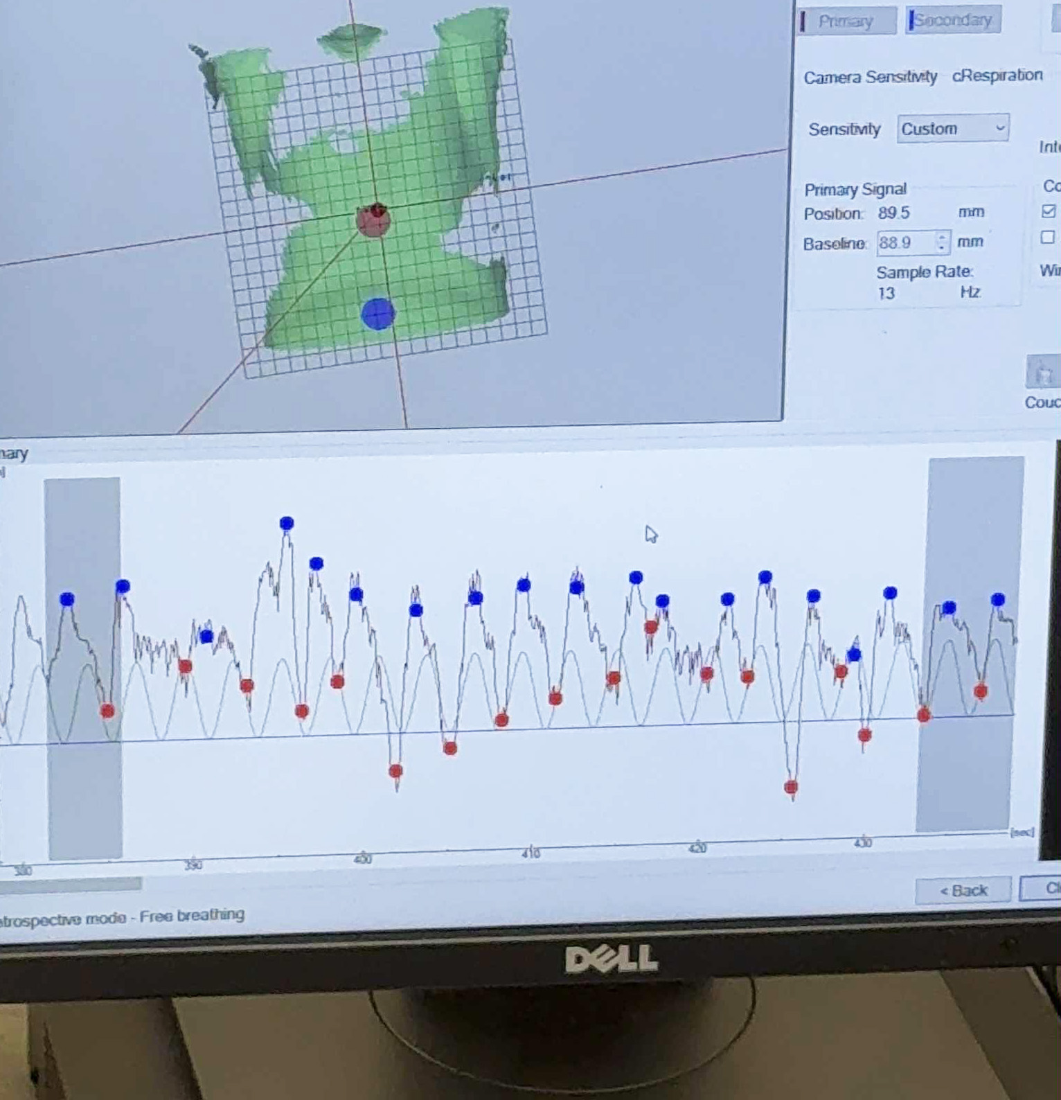 "Καταγράφει την αναπνοή σε όλες τις φάσεις της και δημιουργεί μια μέση αξονική, προκειμένου να δοθεί ακριβής θεραπεία στον όγκο στόχο. Με την συνδρομή της Τεχνητής Νοημοσύνης το ολόγραμμα μεταφέρεται στην οθόνη του υπολογιστή. Εκεί συγκρίνεται το ολόγραμμα του αξονικού με αυτό της επιφάνειας του ασθενούς και όταν ταυτίζονται ανάβει πράσινο φως ώστε να δοθεί ακτινοβολία. Αν ο ασθενής κουνηθεί λίγο μέσω αναπνοής ή κουνήσει κάποιο χέρι, η εικόνα κοκκινίζει και σταματάει η ακτινοθεραπεία".