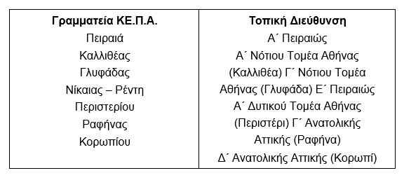 Στη νέα δομή θα εξετάζονται οι πολίτες που υπάγονται στις παρακάτω Γραμματείες ΚΕΠΑ: