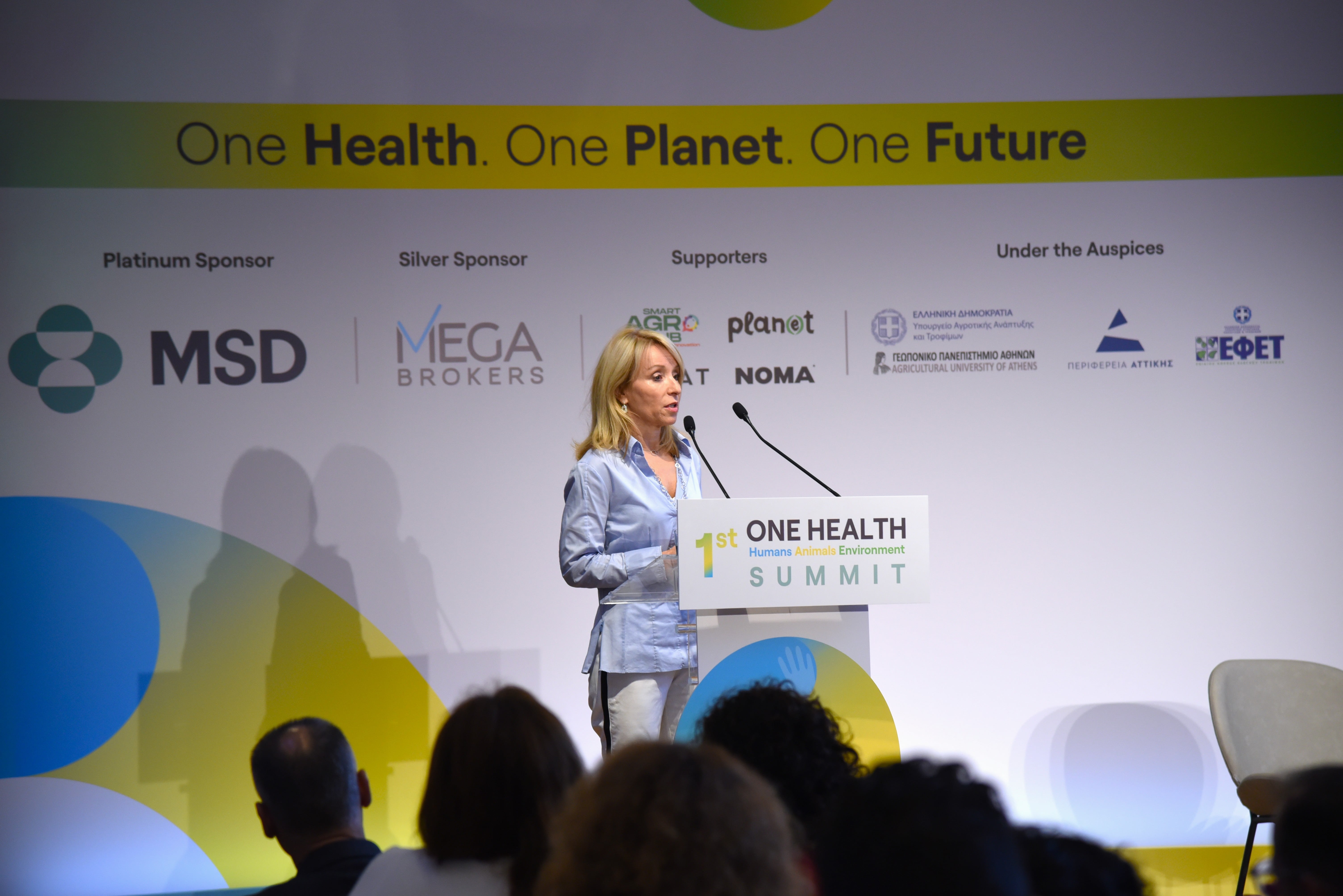 Τη σημασία της προσέγγισης One Health, που αναγνωρίζει την αλληλεξάρτηση ανθρώπινης, ζωικής και περιβαλλοντικής υγείας ανέδειξε η Agata Jakoncic, Managing Director της MSD για Ελλάδα, Κύπρο και Μάλτα. Στον χαιρετισμό της, υπογράμμισε μεταξύ άλλων ότι οι σύγχρονες προκλήσεις απαιτούν διεπιστημονική συνεργασία, πρόληψη και ολιστικές λύσεις. Έκανε ακόμη γνωστό ότι στις προθέσεις της MSD, που ήταν Πλατινένιος Χορηγός του ONE HEALTH SUMMIT, είναι να αναλάβει ηγετικό ρόλο στη δημόσια συζήτηση για το One Health.