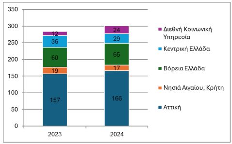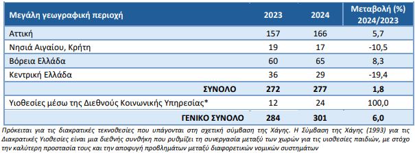 Από τη σύγκριση των στοιχείων μεταξύ των ετών 2023 και 2024 παρατηρήθηκε μείωση 33,3% (από 6 σε 4) στις περιπτώσεις των πράξεων υιοθεσίας στις οποίες το νομικό καθεστώς των υιοθετηθέντων δεν έχει δηλωθεί (μη δηλωθέν).