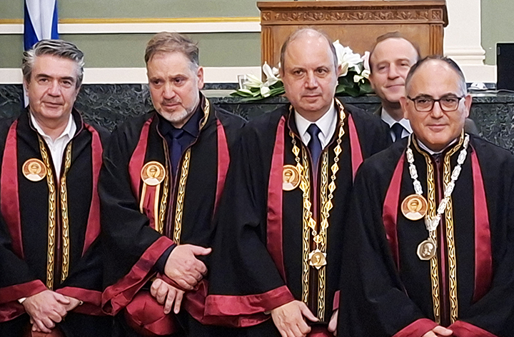 Η συγκίνηση ήταν διάχυτη, το βράδυ της Τετάρτης, στην Αίθουσα Τελετών της Παλιάς Φιλοσοφικής Σχολής του ΑΠΘ, κατά τη διάρκεια αναγόρευσης του καθηγητή Νευρολογίας στο Πανεπιστημιακό Νοσοκομείο της Hadassah της Ιερουσαλήμ, Δημητρίου Καρούση, σε επίτιμο διδάκτορα του Τμήματος Ιατρικής (φωτογραφία).