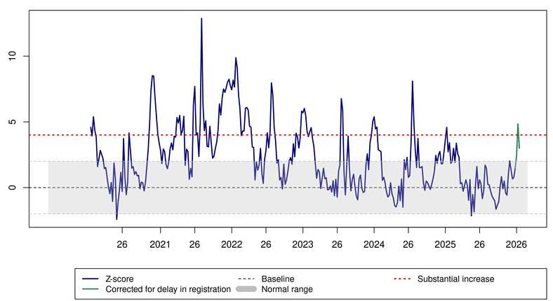Οι αυξημένοι θάνατοι κατά την τρέχουσα περίοδο καταγράφονται και στην ευρωπαϊκή βάση παρατήρησης υπέρβασης της θνησιμότητας "EuroMOMO", στην οποία συμμετέχει και η Ελλάδα.